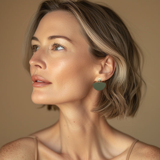 Petticoat Minimalist Dangle Earrings - Matte Olive Green & Gold