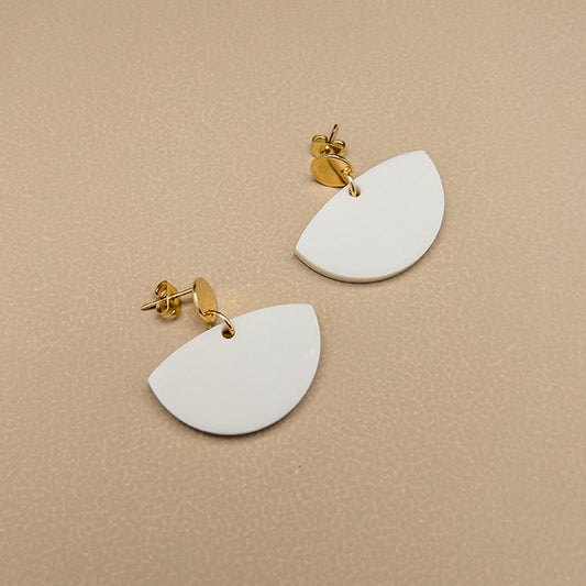 Frankie Minimalist Dangle Earrings - Matte Ivory Beige & Gold