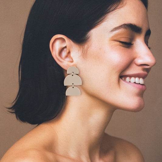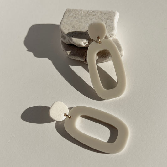 CLIP ON Boulder Statement Dangles - Ivory Beige