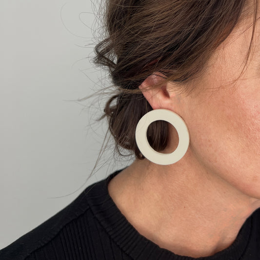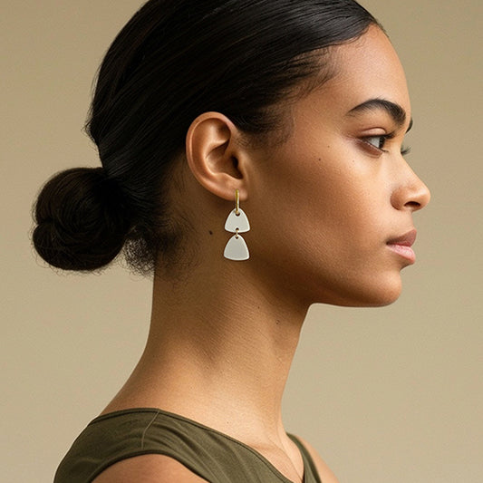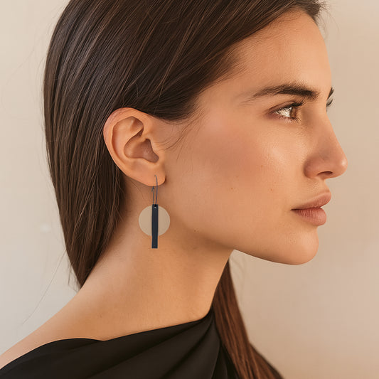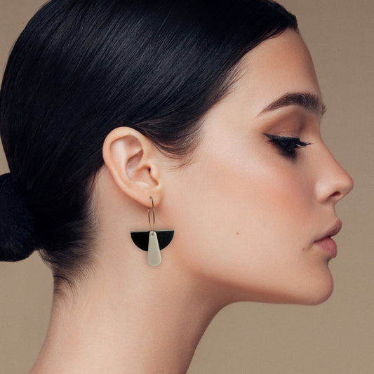 Art Deco Dangle Hoop - Matte Black and Matte Ivory Beige