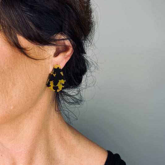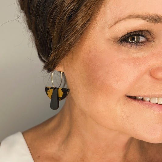 Art Deco Dangle Hoop - Tortoise Shell and Black