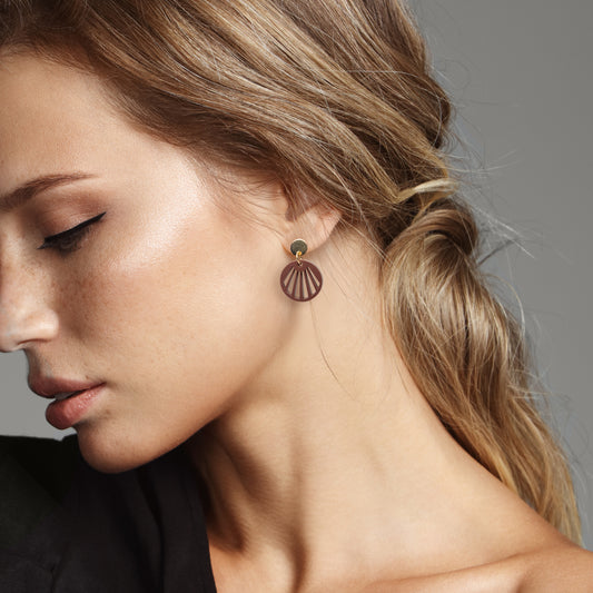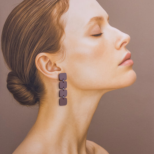 Four Squared Long Drop Dangle Earrings - Matte Nutmeg Brown