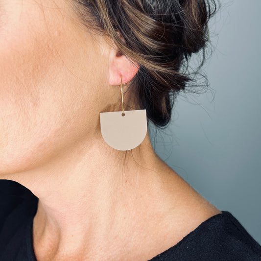Freya Huggie Dangle Hoop Earrings - Matte Ivory Beige
