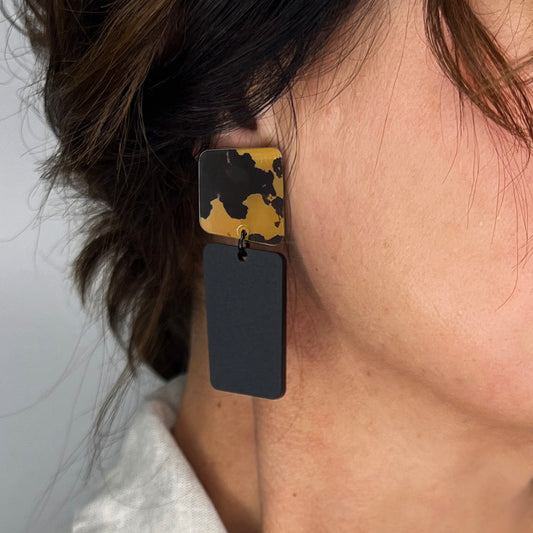 CHARLIE Dangle Earrings - Matte Black and Gold