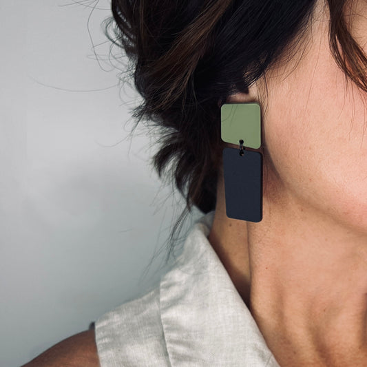 BAUHAUS Statement Earrings - Olive Green and Black