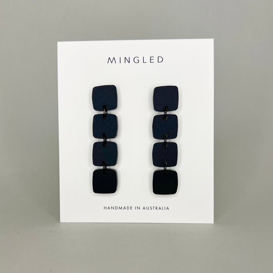 Four Squared Long Dangle Earrings - Black