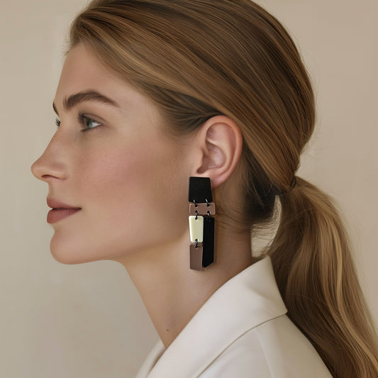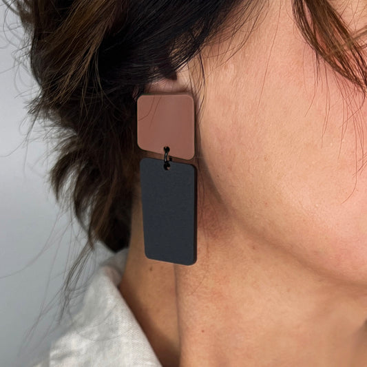 BAUHAUS Statement Earrings - Matte Black and Nutmeg Brown