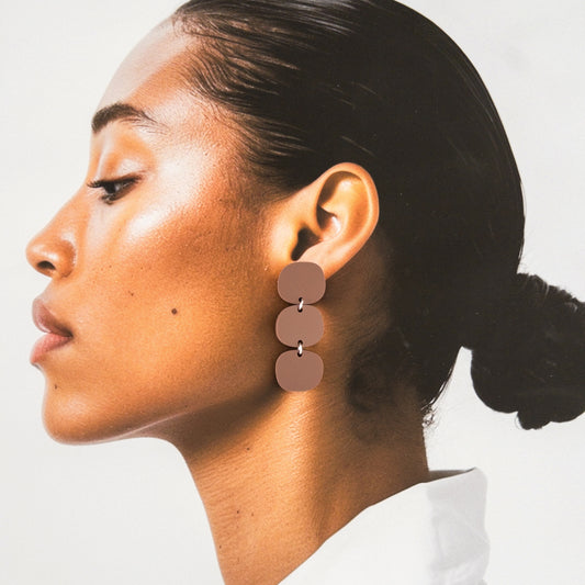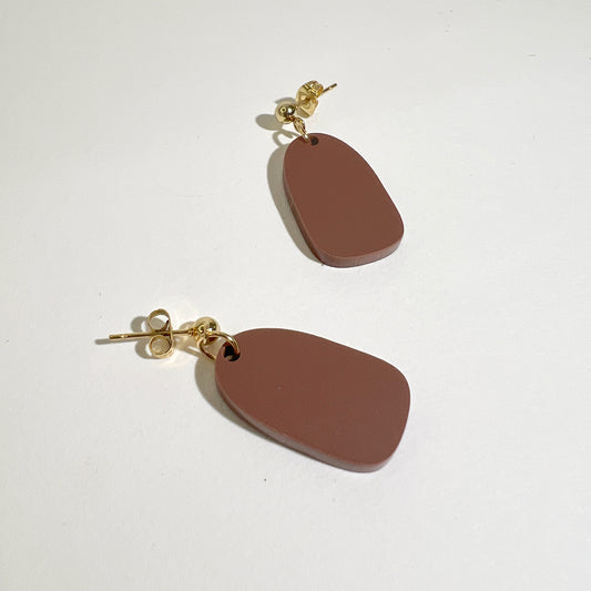 Petticoat Minimalist Dangle Earrings - Matte Nutmeg Brown
