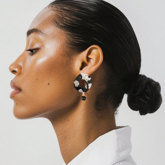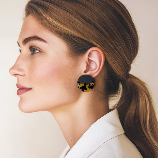 TWO PIECE Statement Earrings - Tortoise Shell and Black