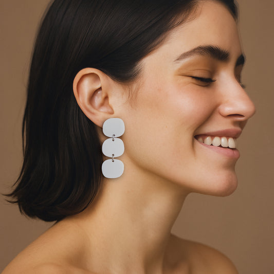 Frankie Minimalist Dangle Earrings - Matte Ivory Beige & Gold