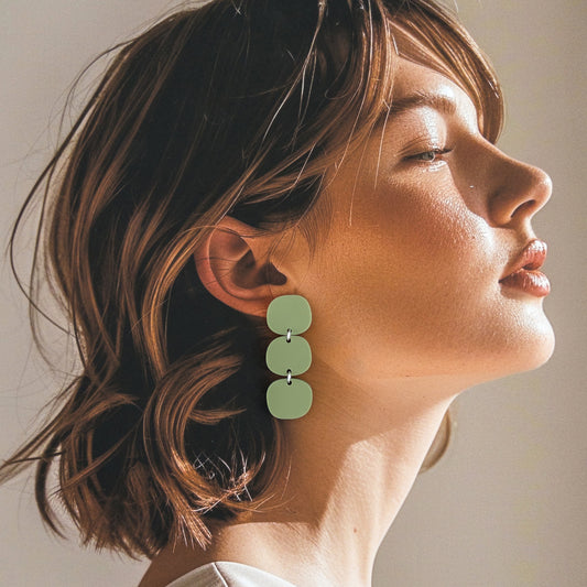 Petticoat Minimalist Dangle Earrings - Matte Olive Green & Gold