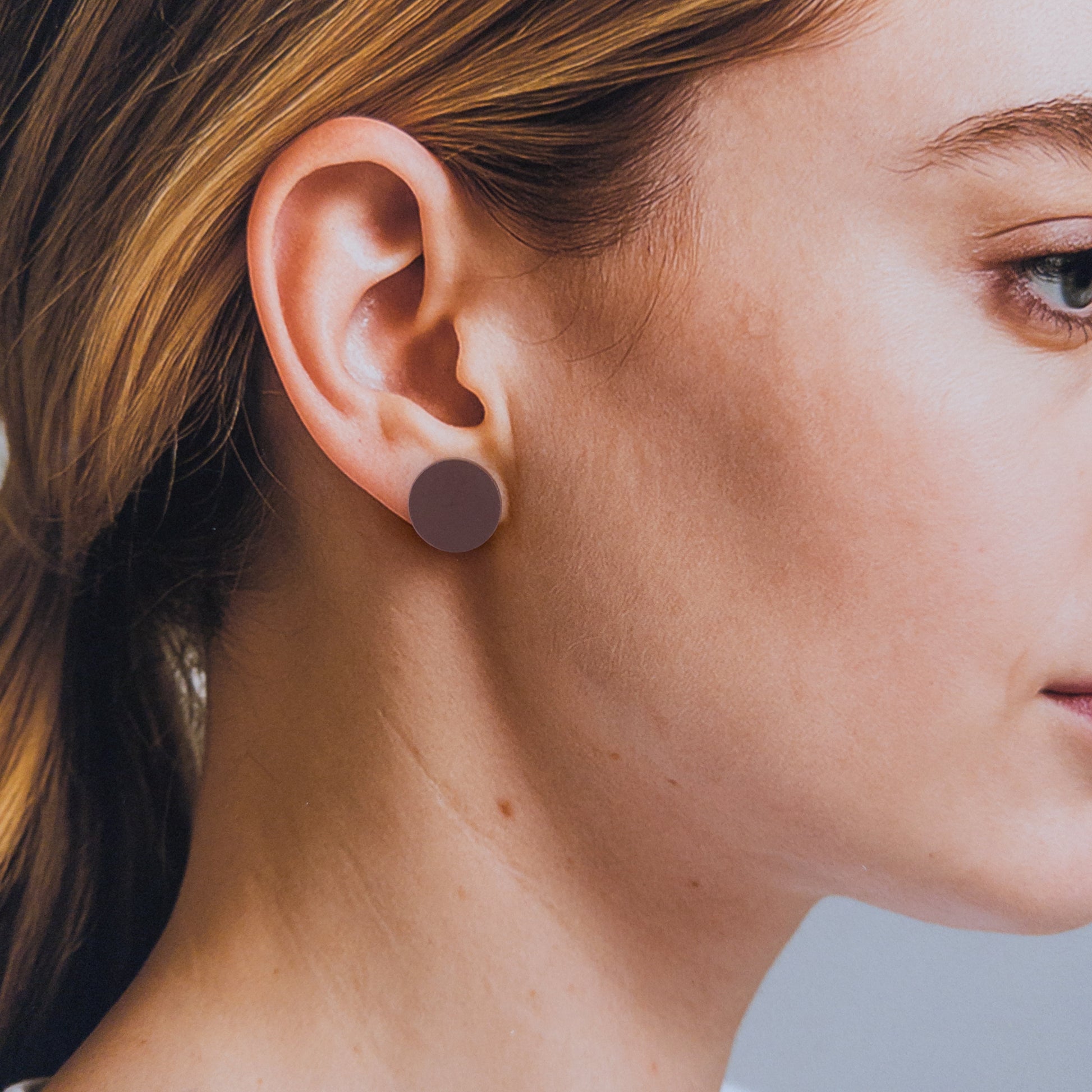 15mm Round Disc Studs in Matte Finish. Flat Disc circle measuring 15mm wide. These earrings have surgical steel earring posts and are hypoallergenic making them perfect for sensitive ears.