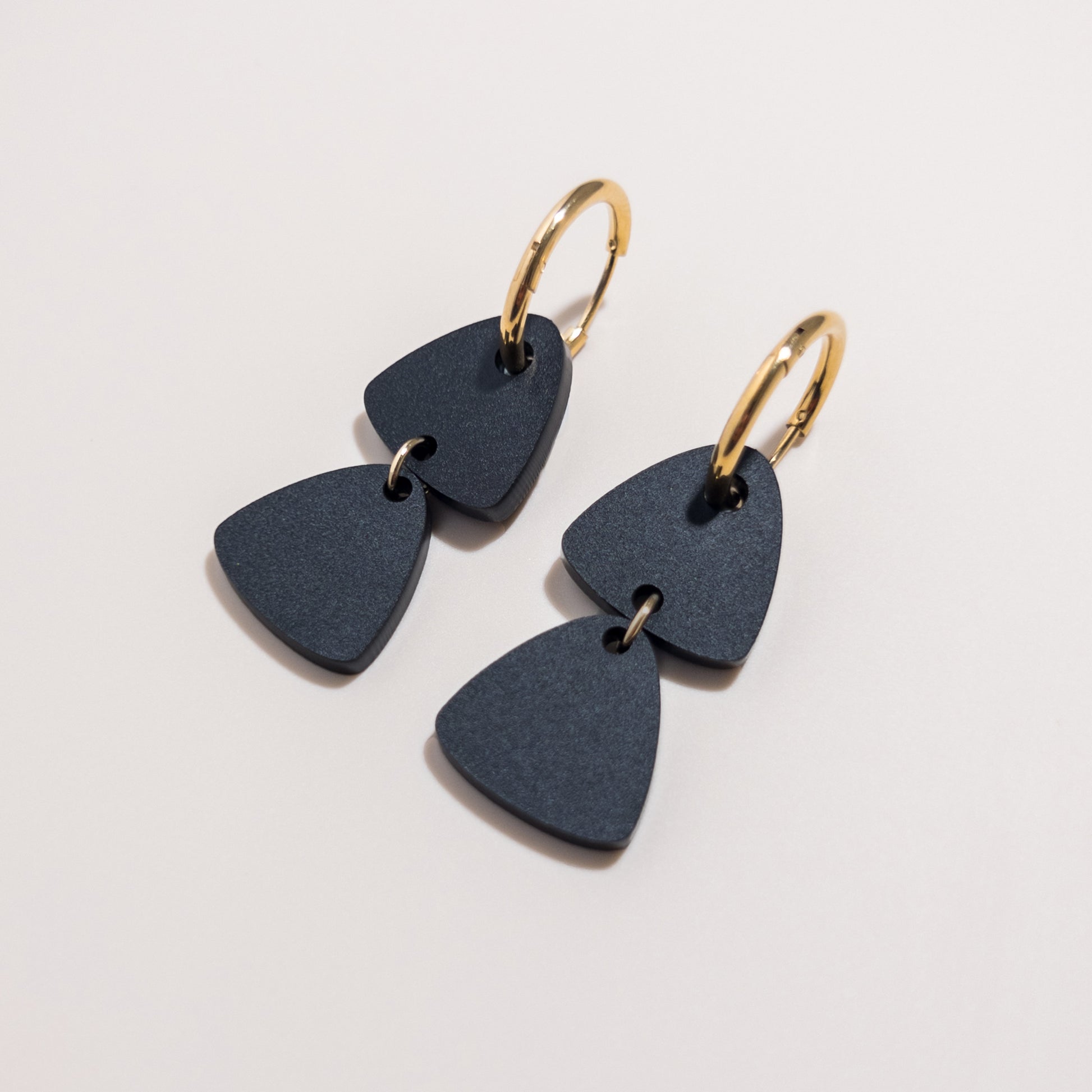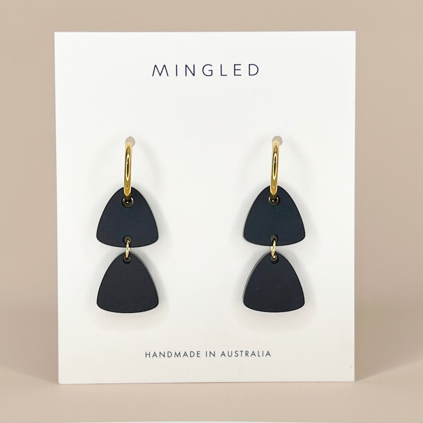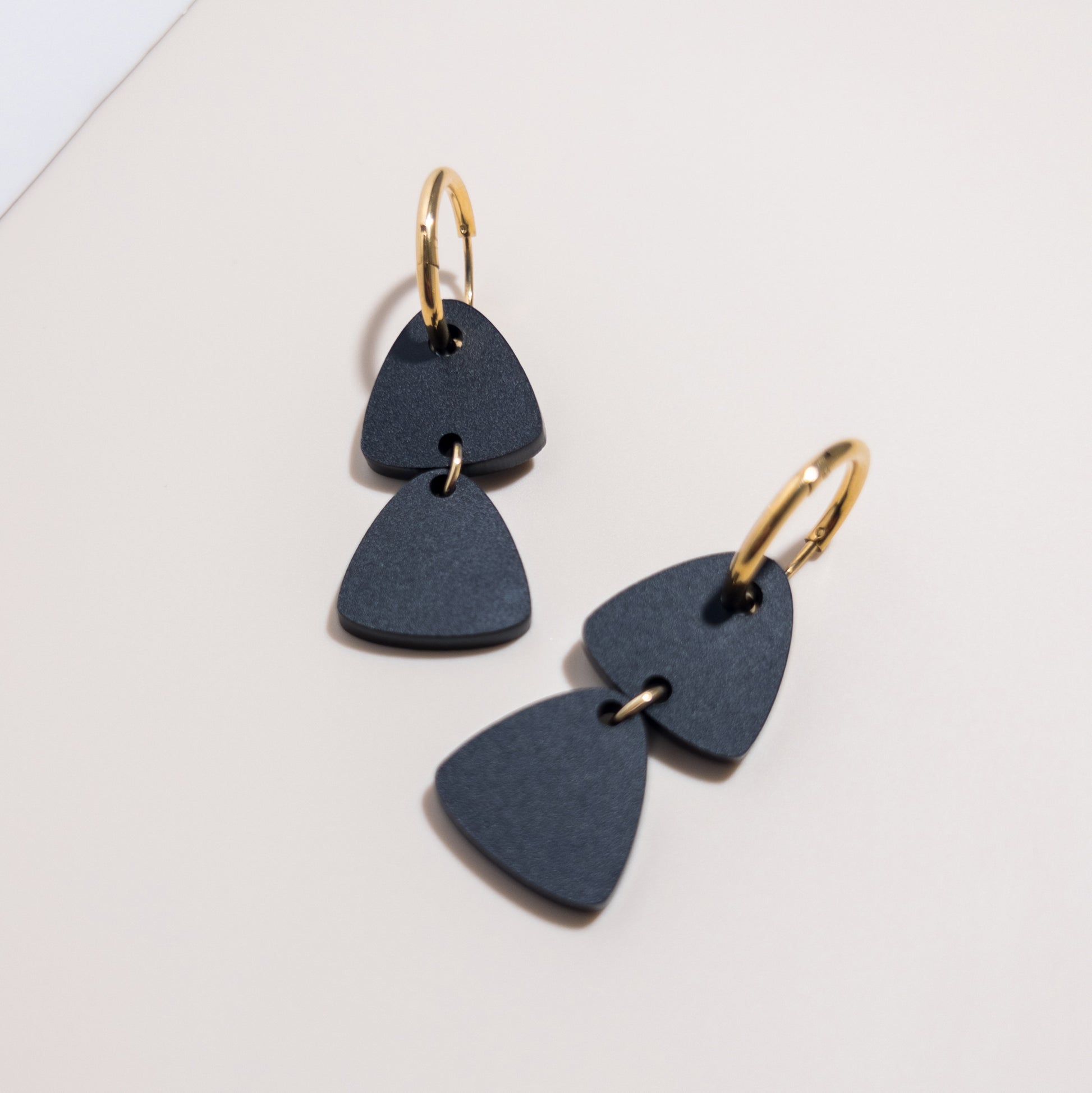 The Freya Dangle features a huggie style hoop in your choice of Gold or silver plating paired with two delicately curved dangles.