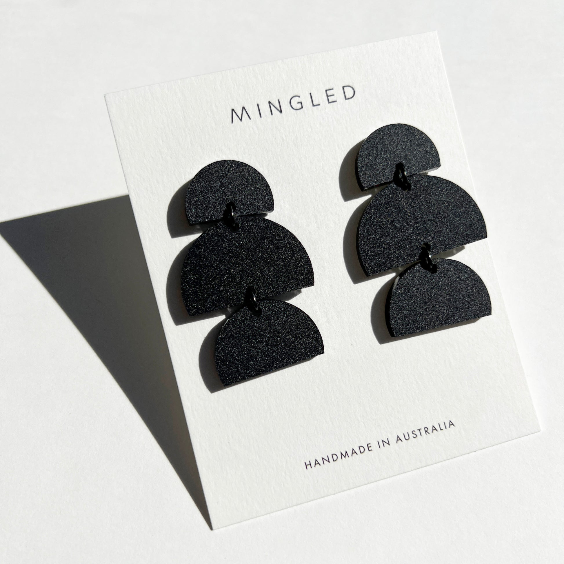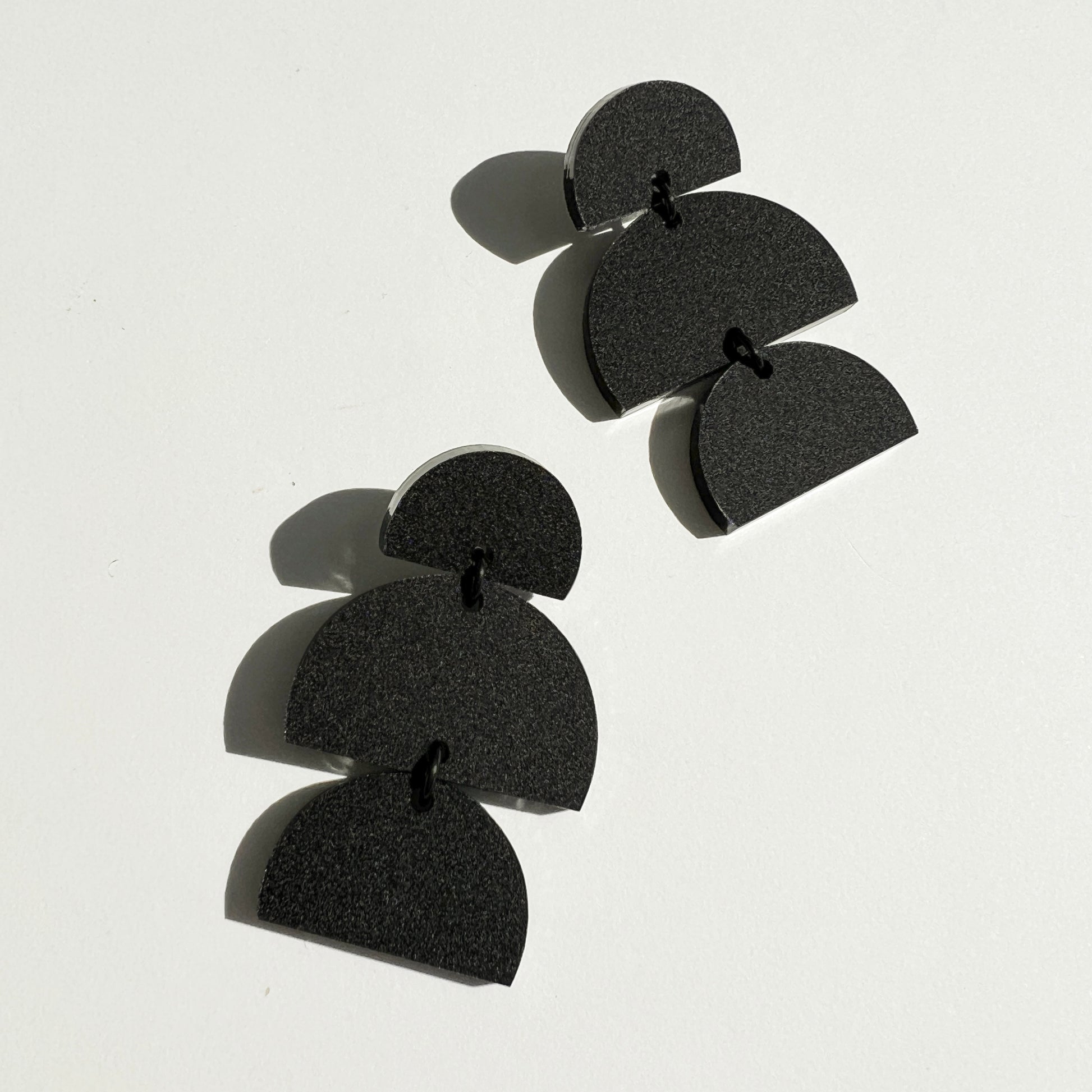 The gorgeous 'Izzy' statement dangle earrings in stunning matte black. The Surgical Steel Hypoallergenic posts make them perfect for sensitive ears. Made from highly durable acrylic, these earrings are super lightweight, you won't even know you are wearing them. A modern and mid century style dangle earring that you can dress up or down, day and night.