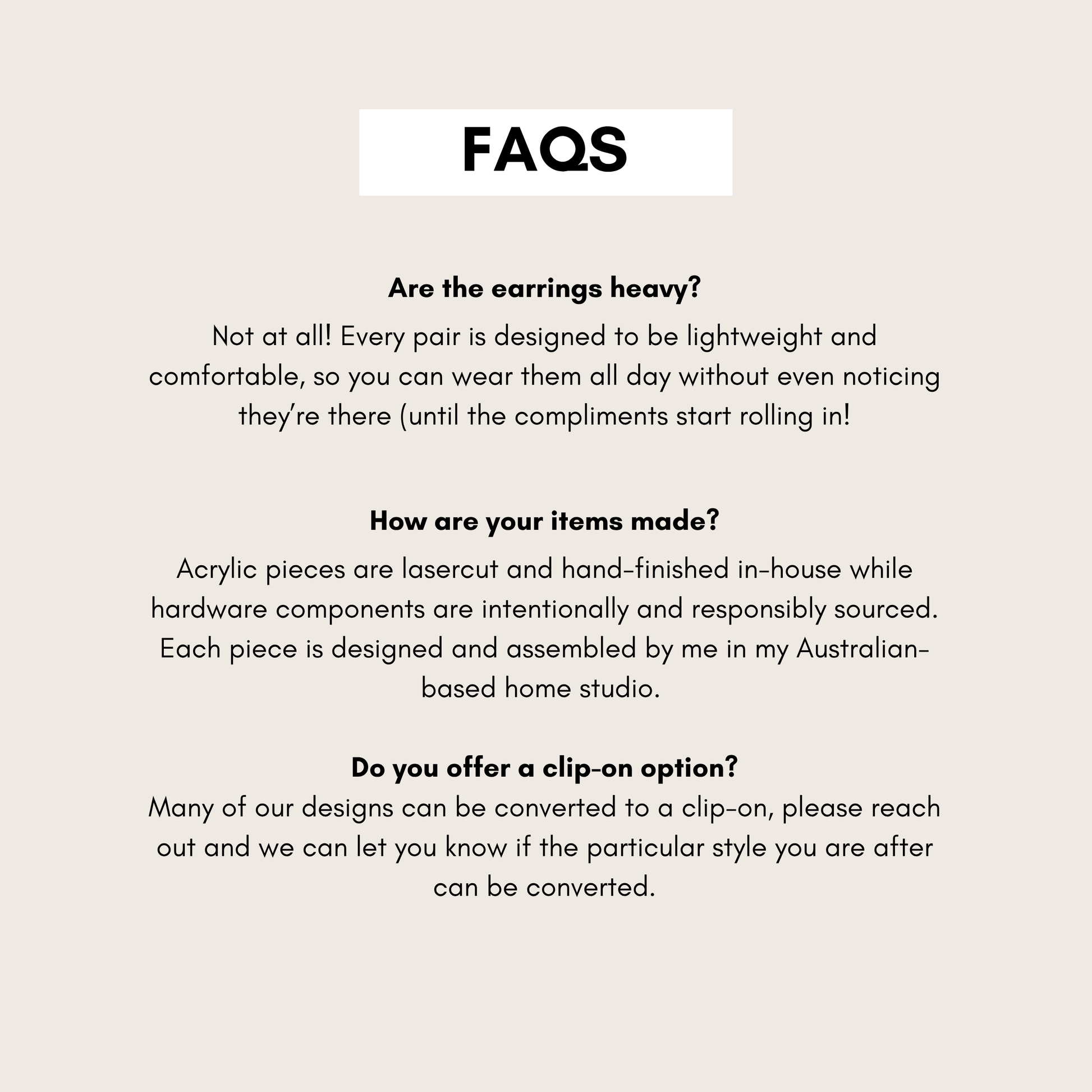 Made with hypoallergenic surgical steel stud posts these earrings and extremely lightweight and combine modern style with wearability, making them the perfect sophisticated accessory for any occasion.
