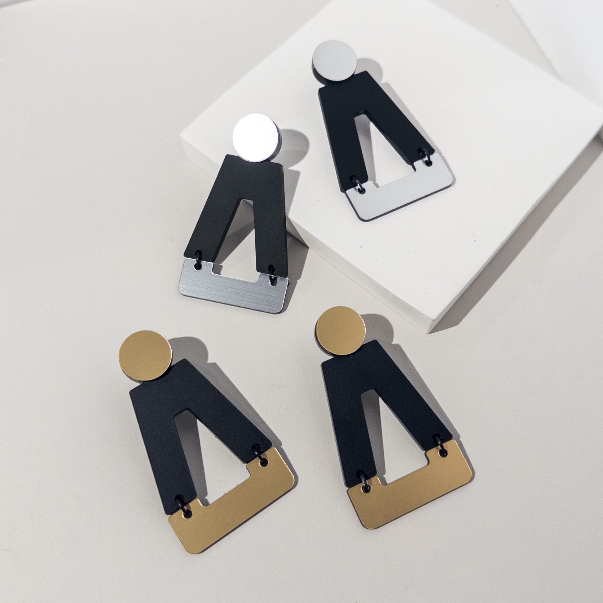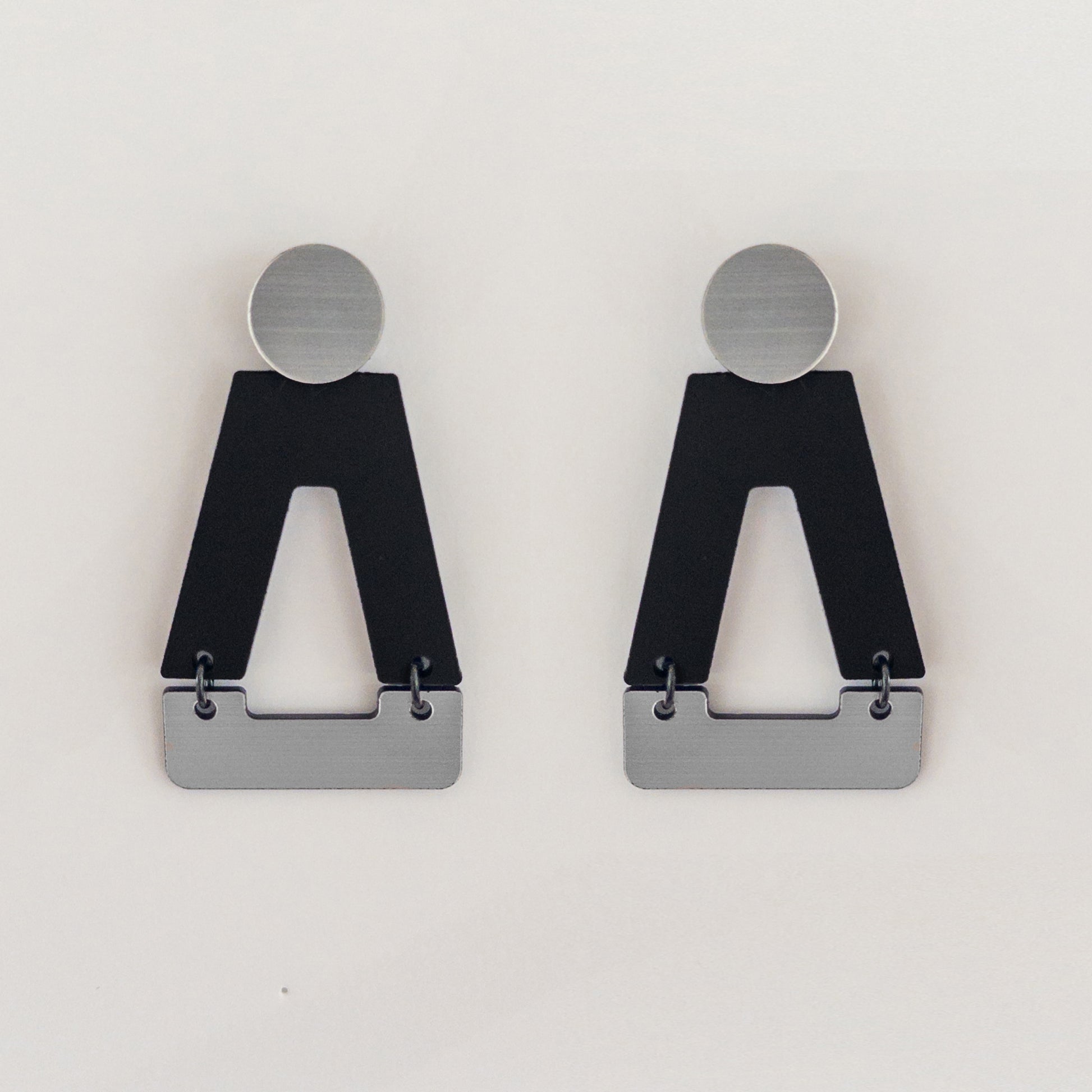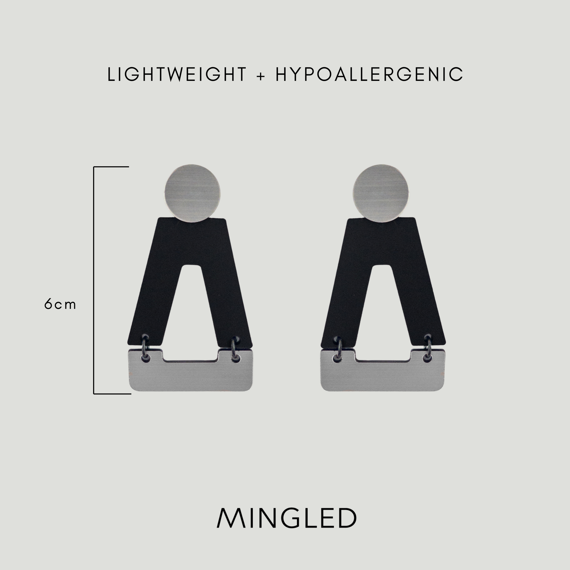 The Tempio Earrings are the ultimate in modern contemporary statement earrings. Matte black acrylic paired with faux brushed silver makes for a luxe look without the weight.